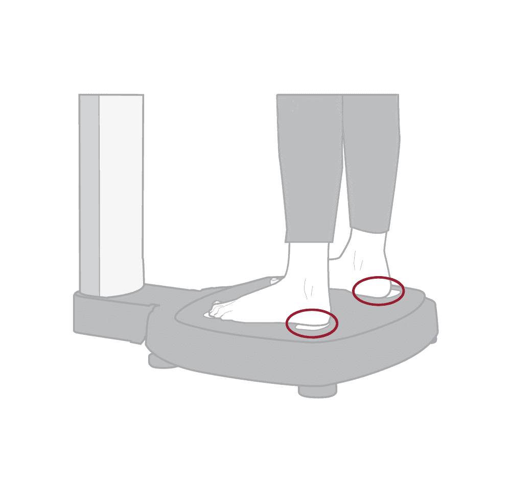 Align your feet with the foot electrodes — your weight will be automatically measured.