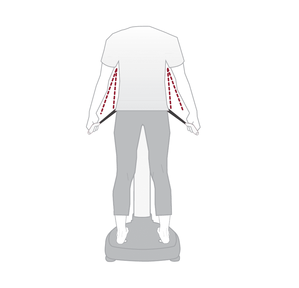Keep your arms straight and hold the handles away from your body at a 45º angle.