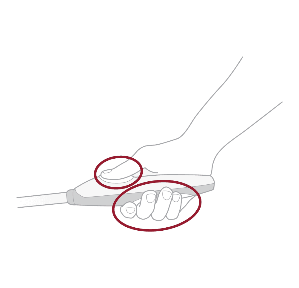 Place your thumbs on the oval-shaped thumb electrodes.